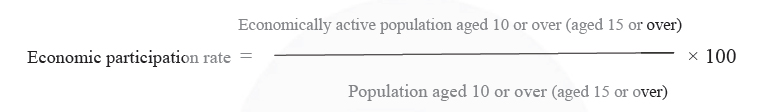 The ratio of the active population (employed & unemployed) 10 years of age or over (15 years of age or over) to the working age population 10 years of age or over (15 years of age or over) multiplied by 100.