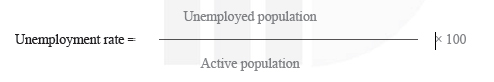 The ratio of the unemployed population to the active population (employed & unemployed) multiplied by 100.