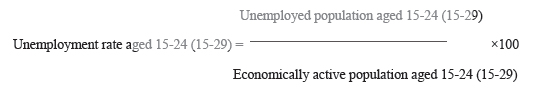 The ratio of the unemployed population aged 15 -24 (15-29 years of age) to the economically active population at age 15-24 (15-29) multiplied by 100.