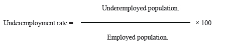 Underemployment rate The ratio of the underemployed population to the active population multiplied by 100