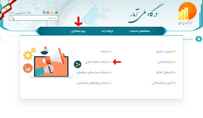 <div class="row submenu_style01 first-submenu"> <div class="col-sm-5"> <h6 style="line-height: 20px;"><img alt="" src="/Portals/0/image/menuIcon.png" /><strong><span style="font-size: 14px;"> </span><span style="font-size:14px;"><span style="color:#006699;"><span style="color: rgb(0, 102, 153);"><strong>خدمات:</strong></span></span></span></strong></h6> <ul> <li><img alt="" src="/Portals/0/images/Dots/linkicon.png" /> <a href="/خانه-جدید/میز-خدمات-الکترونیک" target="_blank"><span style="color:#006699;">میز خدمت الکترونیکی</span></a></li> <li><img alt="" src="/Portals/0/images/Dots/linkicon.png" /> <a href="https://sso.sci.org.ir/"><span style="color:#006699;">پنجره واحد خدمات هوشمند</span></a></li> <li><img alt="" src="/Portals/0/images/Dots/linkicon.png" /> <a href="/Portals/0/Services/final_Bayaniie_Rahbord_Mosharekat_1402.pdf?ver=WJPYSVEIG8NXloOB8dJmOw%3d%3d" target="_blank"><span style="color:#006699;">بیانیه راهبرد مشارکت الکترونیکی</span></a></li> <li><img alt="" src="/Portals/0/images/Dots/linkicon.png" /> <a href="/-درباره-مرکز-آمار-ایران/راهبرد-ها-و-خط-مشی-ها/راهبرد-مشارکت-الکترونیکی" target="_blank"><span style="color:#006699;">راهبرد</span><span style="color:#006699;"> مشارکت مردمی (نظرسنجی)</span></a></li> <li><img alt="" src="/Portals/0/images/Dots/linkicon.png" /> <a href="/Portals/0/Services/BarnameEjraii_Tosee_DolatElectronic_1400.pdf?ver=zQo4ZpKdhVzaBbXukkcEnA%3d%3d" target="_blank"><span style="color:#006699;">برنامه اجرایی توسعه خدمات الکترونیکی</span></a></li> <li><img alt="" src="/Portals/0/images/Dots/linkicon.png" /> <a href="/میز-خدمت-و-سامانهها/نتایج-نظرسنجیها" target="_blank"><span style="color:#006699;">نتایج نظرسنجی خدمات الکترونیکی</span></a></li> <li><img alt="" src="/Portals/0/images/Dots/linkicon.png" /> <a href="/خانه/سامانه-شفافیت" target="_blank"><span style="color:#006699;">سامانه شفافیت</span></a></li> </ul> </div> <div class="col-sm-5"> <h6 style="line-height: 20px;"><img alt="" src="/Portals/0/image/menuIcon.png" /> <span style="font-size:14px;"><span style="color:#006699;"><strong>سامانهها:</strong></span></span></h6> <ul> <li><img alt="" src="/Portals/0/images/Dots/linkicon.png" /> <a href="https://ssis.sci.org.ir/" target="_blank"><span style="color:#006699;">سامانهخدماتاطلاعرسانیآماری</span></a></li> <li><img alt="" src="/Portals/0/images/Dots/linkicon.png" /> <a href="https://statdef.sci.org.ir/" target="_blank"><span style="color:#006699;">سامانه تعاريف و مفاهيم آماری</span></a></li> <li><img alt="" src="/Portals/0/images/Dots/linkicon.png" /> <a href="https://statlst.sci.org.ir/"><span style="color:#006699;">سامانه شناسنامه شاخصهای آماری</span></a></li> <li><img alt="" src="/Portals/0/images/Dots/linkicon.png" /> <a href="https://codesearch.sci.org.ir/" target="_blank"><span style="color:#006699;">سامانه انتخاب کد طبقهبندیها</span></a></li> <li><img alt="" src="/Portals/0/images/Dots/linkicon.png" /> <a href="/salnameh-amari" target="_blank"><span style="color:#006699;">سامانه سالنامه آماری</span></a></li> <li><img alt="" src="/Portals/0/images/Dots/linkicon.png" /> <a href="/خانه-جدید/نرمافزار-آمار-همراه" target="_blank"><span style="color:#006699;">نرمافزار آمارهمراه</span></a></li> <li><img alt="" src="/Portals/0/images/Dots/linkicon.png" /> اطلاعات مکانی: <ul> <li><img alt="" src="/Portals/0/images/Dots/bullet_mega.gif" /> <a href="/نقشه-دهستانها"><span style="color:#006699;">نقشه دهستانها</span></a></li> <li><img alt="" src="/Portals/0/images/Dots/bullet_mega.gif" /> <a href="/ارتباط-با-ما/تقسیمات-کشوری"><span style="color:#006699;">تقسيمات کشوری</span></a></li> </ul> </li> </ul> </div> </div>