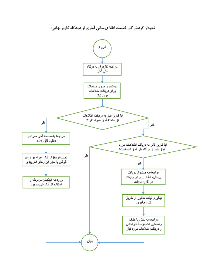 مراحل انجام خدمت : نصب نرم افزار آمار همراه توسط کاربر از طریق درگاه ملی آمار، پارس هاب و چارخونه و آگاهی از شاخص‌های کلیدی آماری