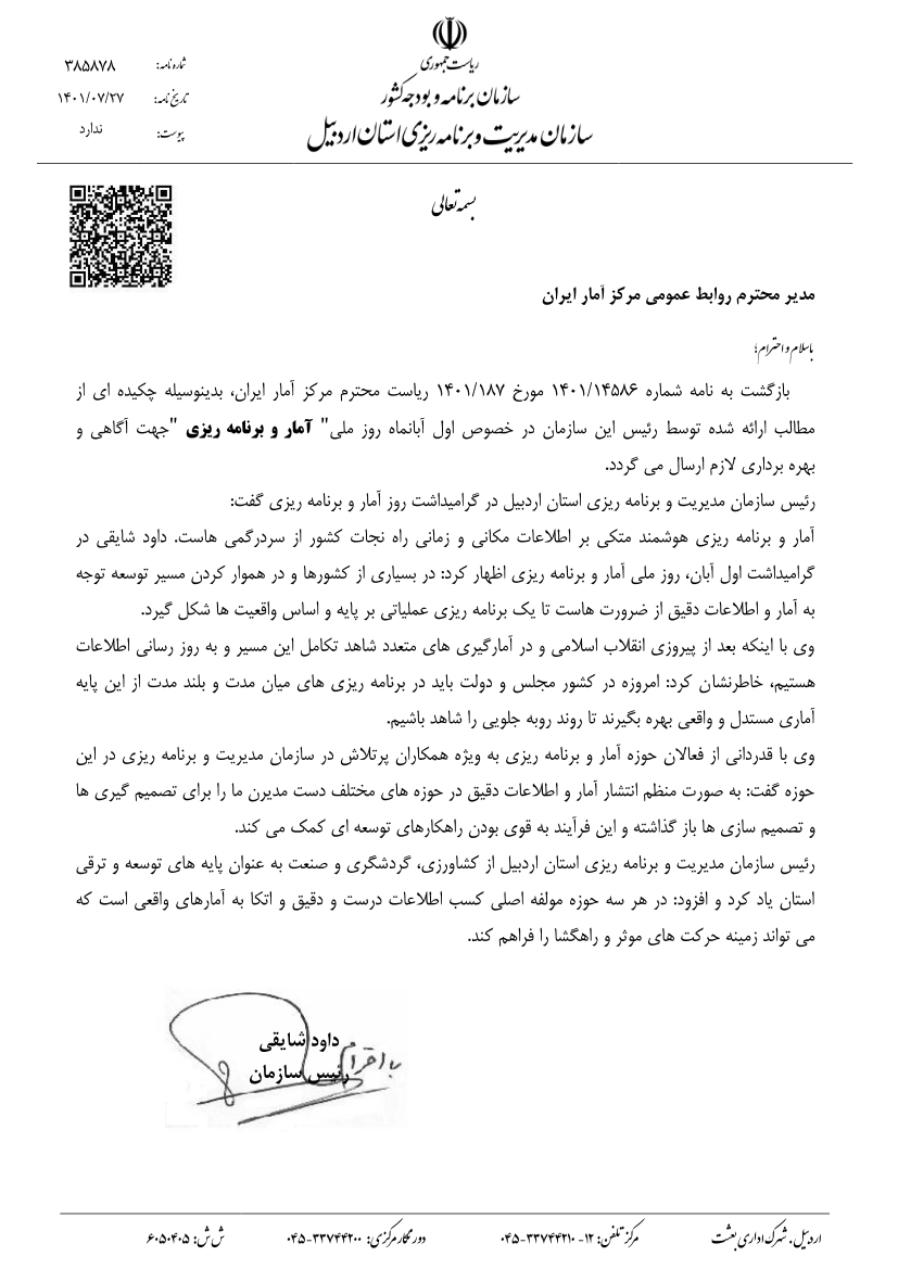 پیام سازمان مدیریت و برنامه ریزی استان اردبیل