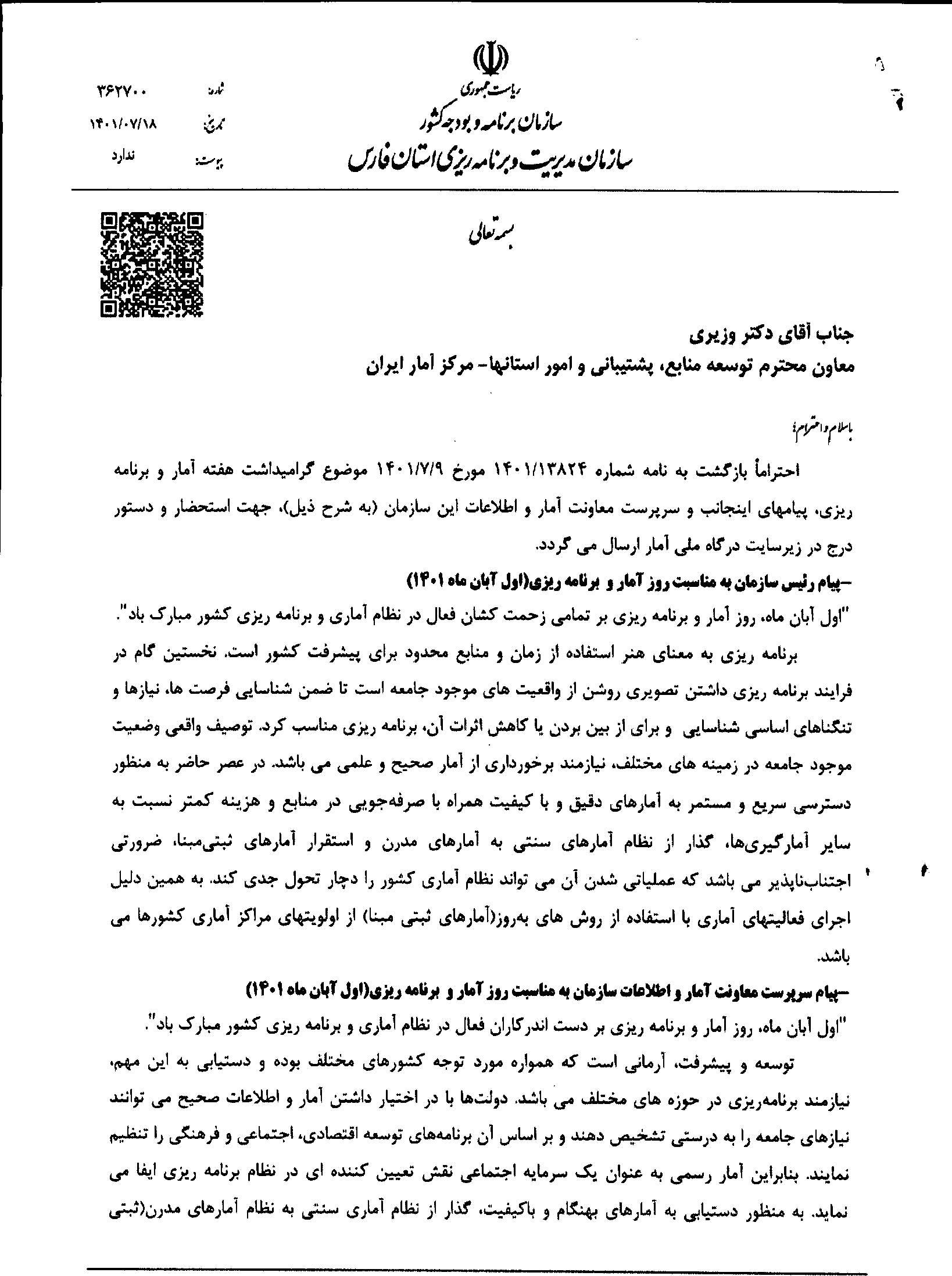 پیام سازمان مدیریت و برنامه ریزی استان فارس