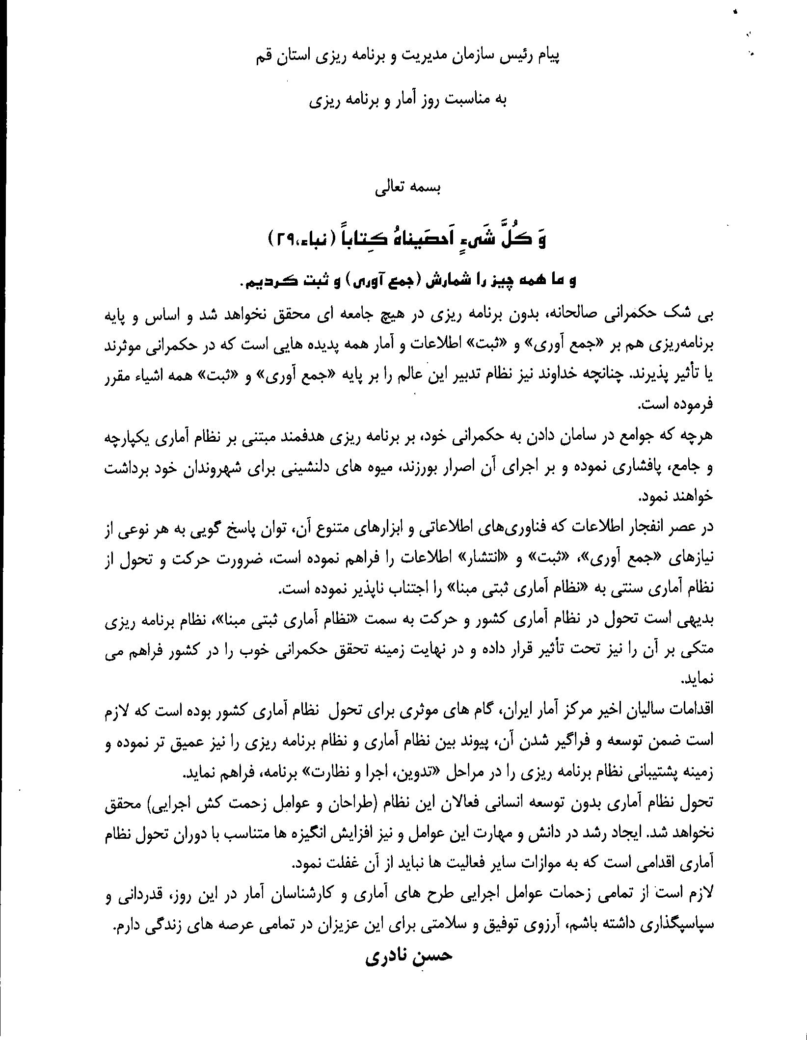 پیام سازمان مدیریت و برنامه ریزی استان قم