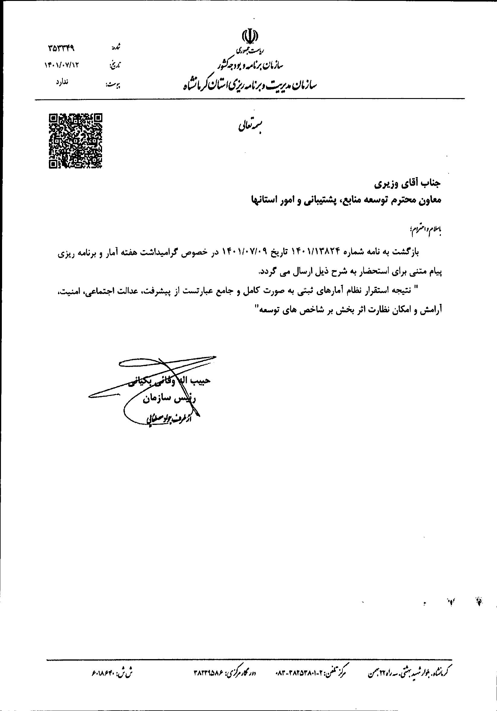 پیام سازمان مدیریت و برنامه ریزی استان کرمانشاه
