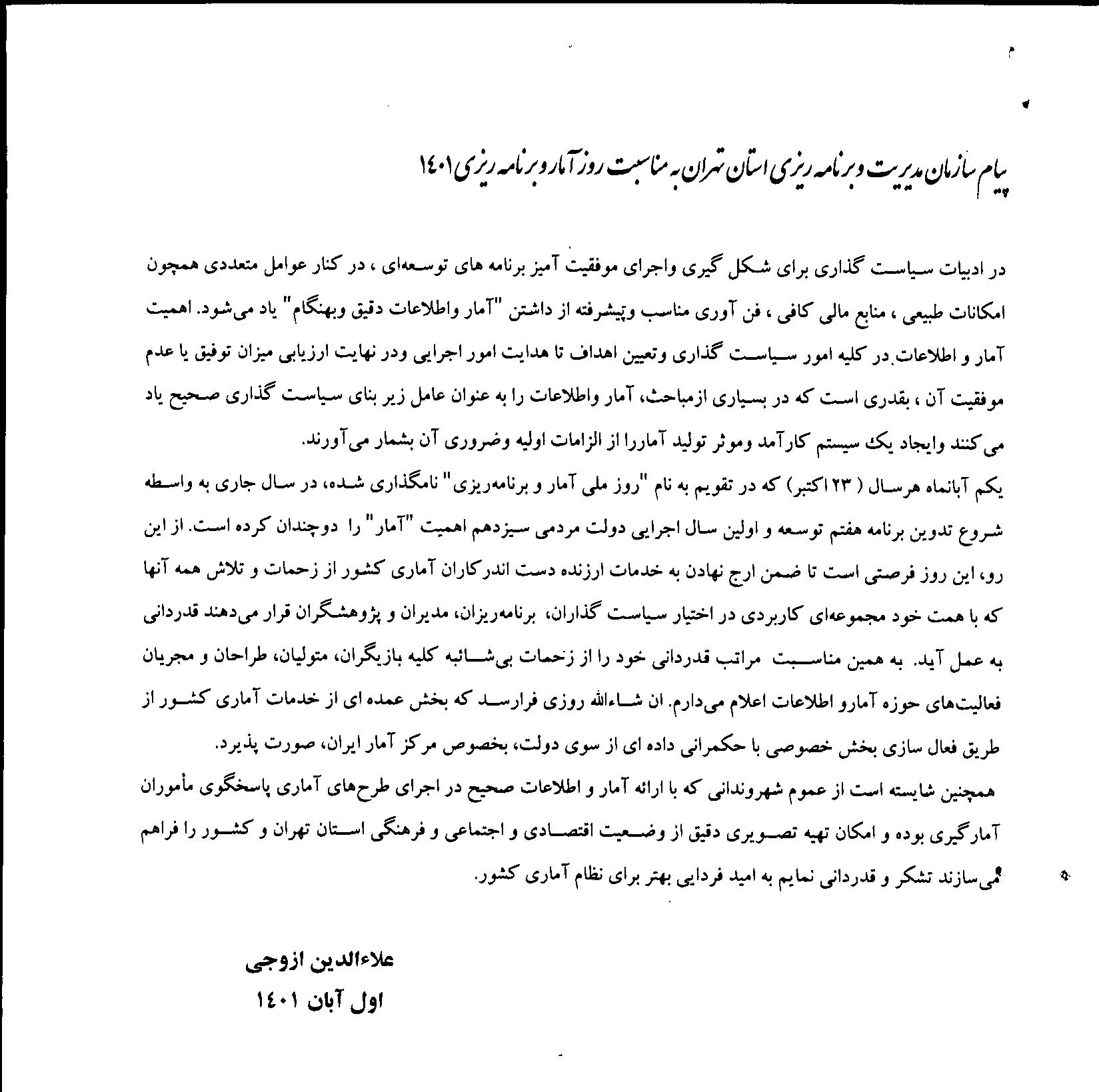 پیام سازمان مدیریت و برنامه ریزی استان تهران