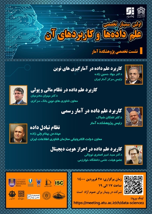 اولین سمینار مجازی با عنوان "علم داده ها و کاربردهای آن "روز چهارشنبه مورخ 25 فروردین 1400 با سخنرانی دکتر حسین زاده رئیس مرکز آمارایران افتتاح شد. در این مراسم دکتر حسین زاده ضمن تبریک سال نو و فرا رسیدن ماه مبارک رمضان وآرزوی قبولی طاعات وعبادات مومنان در درگاه حضرت حق ، گفت : عصری که در آن زندگی می کنیم به عصر دیجیتال معروف است. عصری که در آن پیشرفت های تکنولوژی و فناوری اطلاعات با سرعت بسیار بالا شکل می گیرد. سرعت ظهور این تکنولوژی ها به حدی بالاست که در بسیاری مواقع فراتر از نیاز بشریت احساس می شود.