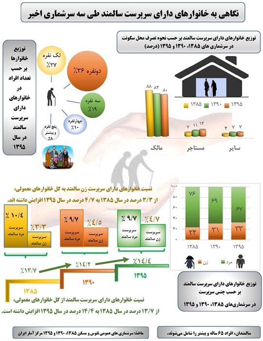 اطلاع نگاشت " نگاهی به خانوارهای دارای سرپرست سالمند طی سه سرشماری اخیر"