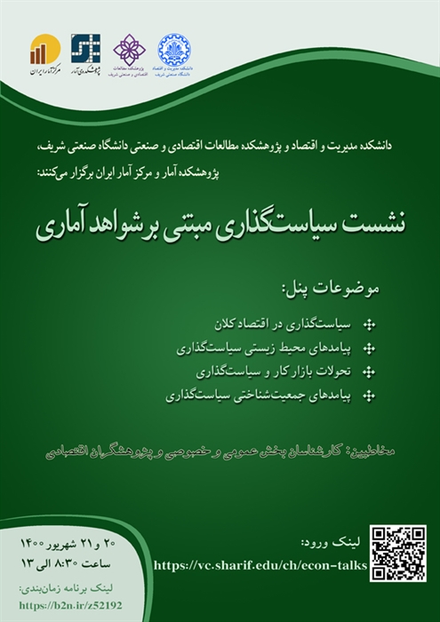 نشست علمی-تخصصی "سیاستگذاری مبتنی بر شواهد" در روزهای شنبه و یکشنبه 20 و 21 شهریور ماه از ساعت 8:30 الی 13 با حضور رییس پژوهشکده آمار و نمایندگان دانشکده مدیریت و اقتصاد، پژوهشکده مطالعات اقتصادی و صنعتی دانشگاه صنعتی شریف و مرکز آمار ایران، اساتید و جمعی از علاقهمندان و صاحبنظران به صورت مجازی برگزار شد.