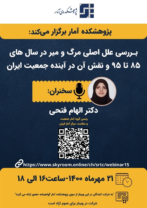 • وبینار بررسی علل اصلی مرگ و میر در سال های 85تا 95 و نقش آن در آینده جمعیت ایران