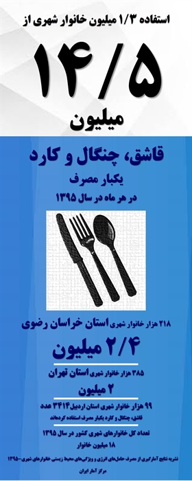اطلاع نگاشت "استفاده خانوارهای شهری از قاشق، چنگال و کارد یکبار مصرف در هر ماه- 1395