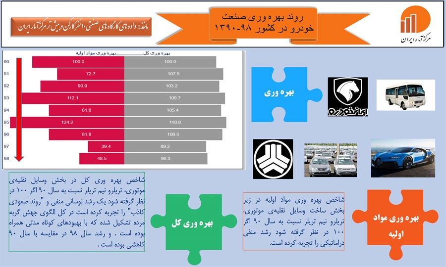 روند بهرهوری صنعت خودرو در کشور1398-1390