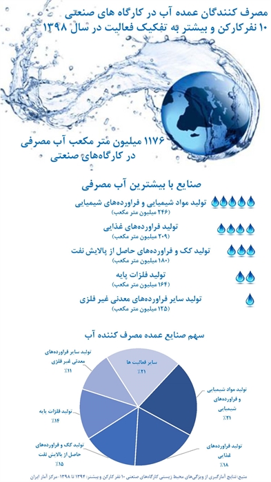 مصرف کنندگان عمده آب در کارگاه های صنعتی 10 نفر کار کن و بیشتر به تفکیک فعالیت در سال 1398