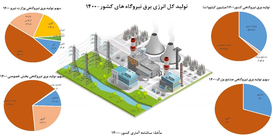 تولید کل انرژی برق نیروگاه های کشور- 1400