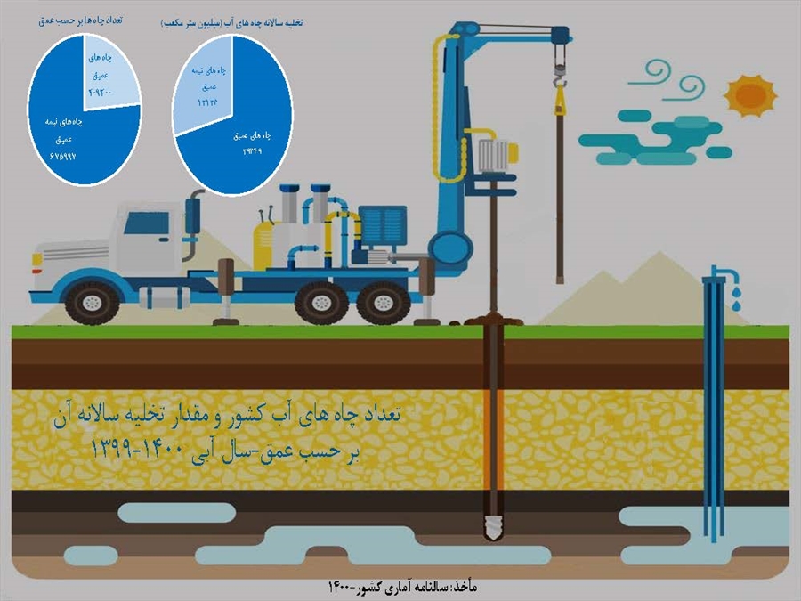 تعداد چاه های آب کشور و مقدار تخلیه سالانه آن بر حسب عمق- سال آبی 1400-1399