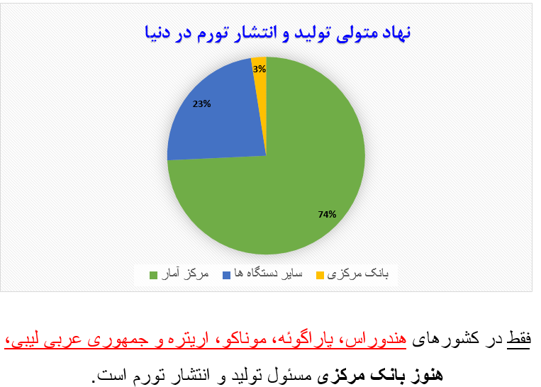 فقط در کشورهای هندوراس، پاراگوئه، موناکو، اریتره و جمهوری عربی لیبی، هنوز بانک مرکزی مسئول تولید و انتشار تورم است.