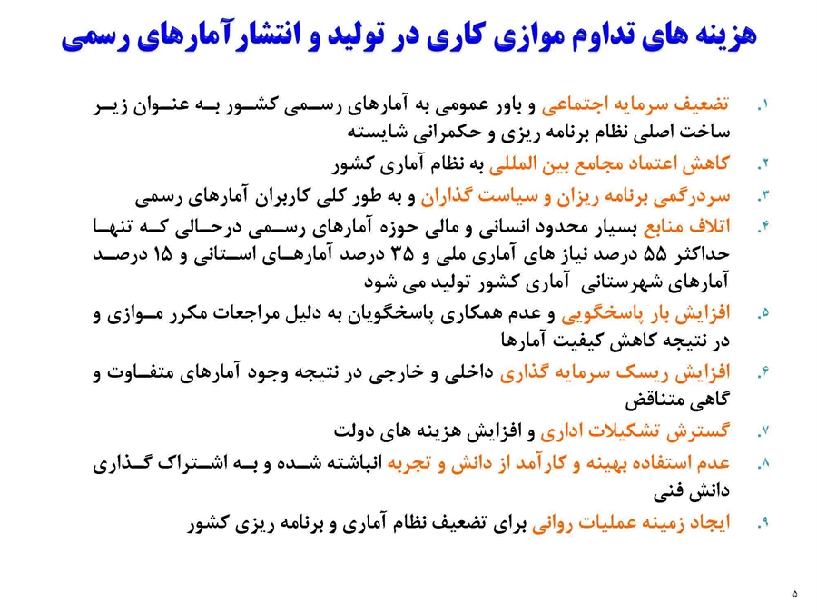دلایل اساسی مرجعیت یگانه مرکز آمار ایران در تولید و انتشار حسابهای ملی وشاخصهای قیمت