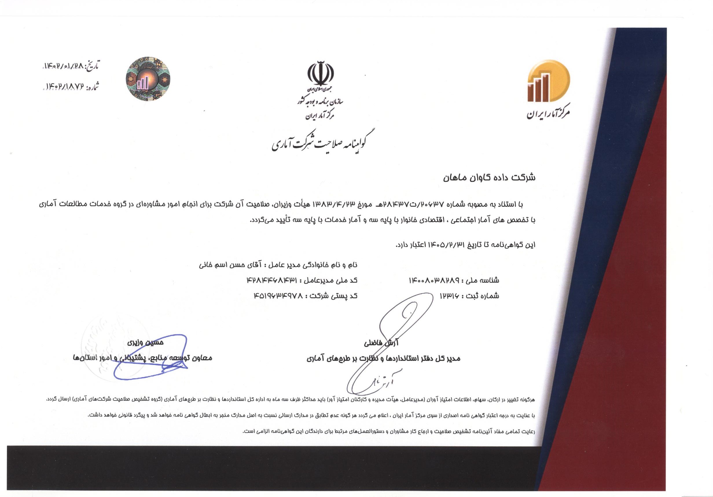 شناسنامه خدمت صدور و تمدید گواهینامه مشاوران آماری