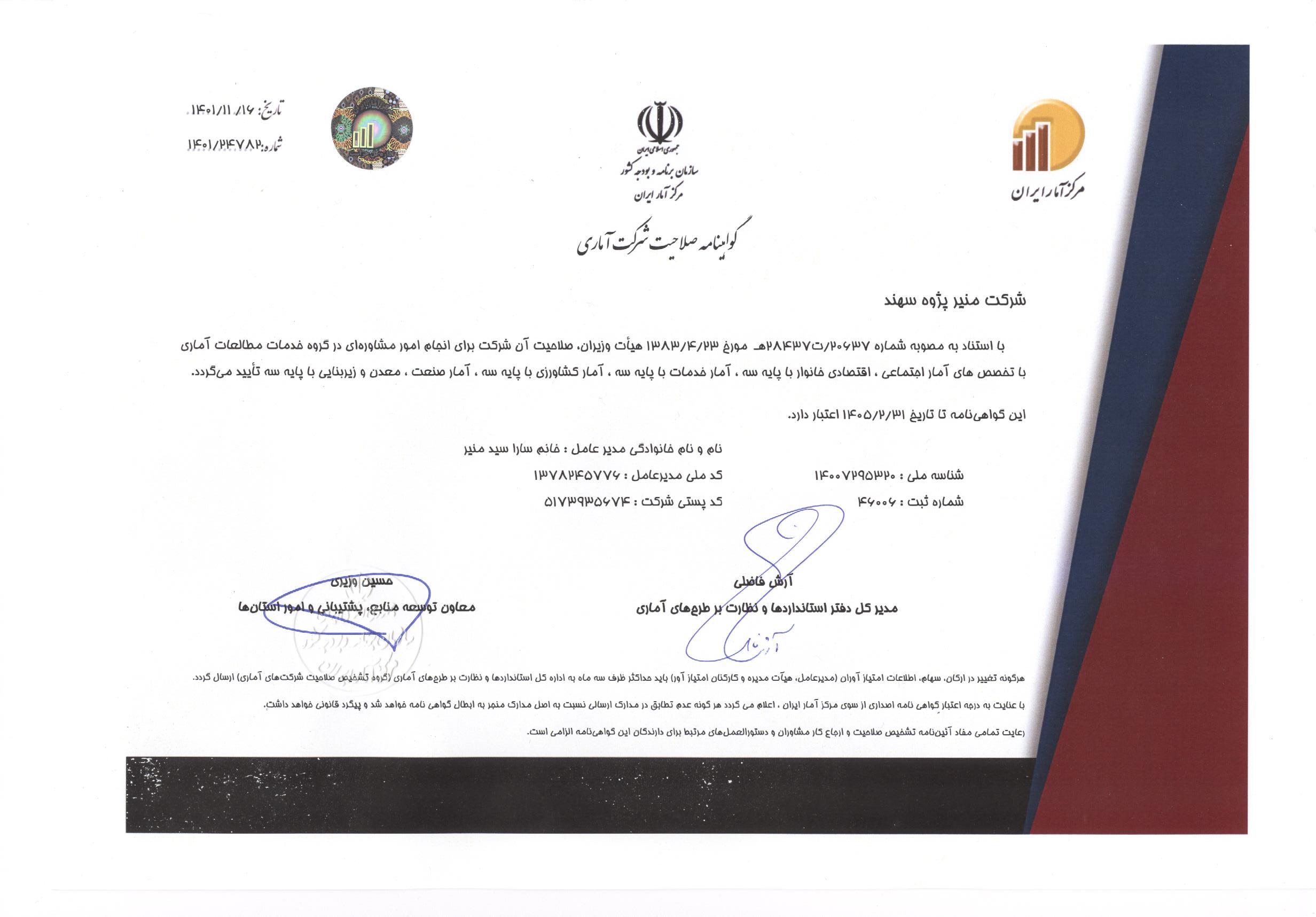 شناسنامه خدمت صدور و تمدید گواهینامه مشاوران آماری