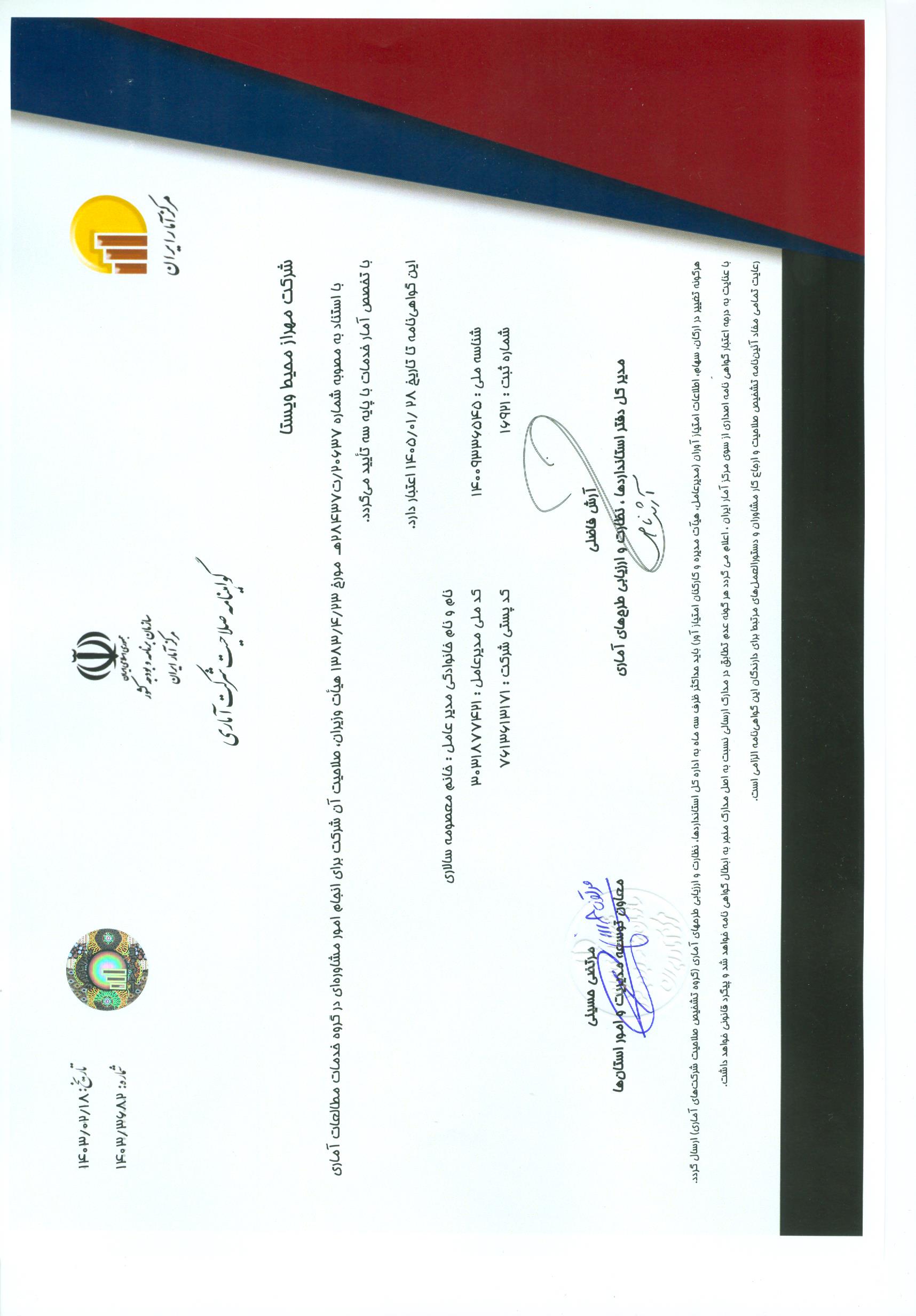 شناسنامه خدمت صدور و تمدید گواهینامه مشاوران آماری