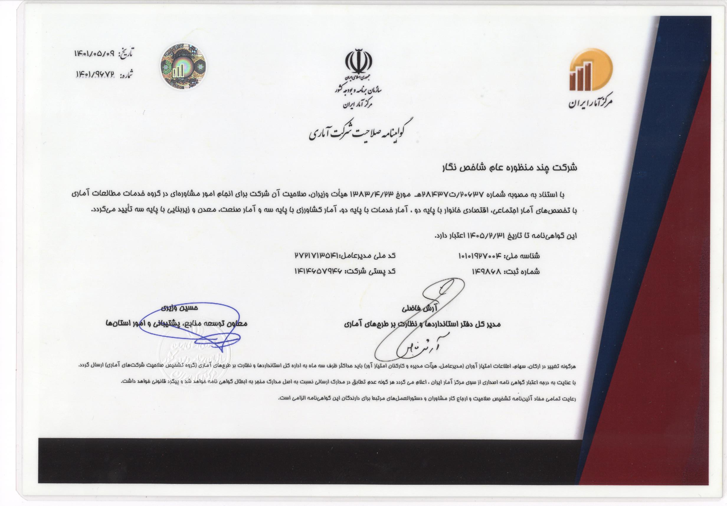 شناسنامه خدمت صدور و تمدید گواهینامه مشاوران آماری
