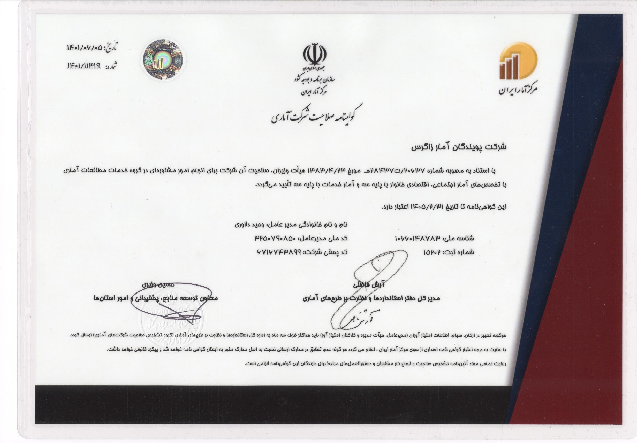 شناسنامه خدمت صدور و تمدید گواهینامه مشاوران آماری